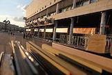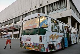 Виды Москвы. Детский книжный автобус на территории парка "Музеон" у здания Центарльного дома художника на Крымском валу.