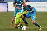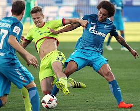 Чемпионат России по футболу. Премьер-лига. 4-ый тур. Матч между командами "Зенит" (Санкт-Петербург) и ЦСКА (Москва). Игрок команды ЦСКА Георгий Щенников (слева) и игрок команды "Зенит" Аксель Витсель (справа) во время матча.