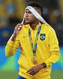 XXXI летние Олимпийские игры в Рио-де-Жанейро. Финальный матч по футболу среди мужчин между сборными командами Бразилии и Германии. Сборная Бразилии одержала победу. Капитан сборной команды Бразилии Неймар после окончания церемонии награждения.