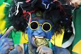 XXXI летние Олимпийские игры в Рио-де-Жанейро. Финальный матч по футболу среди мужчин между сборными командами Бразилии и Германии. Сборная Бразилии одержала победу. Болельщик сборной команды Бразилии.