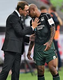 РОСГОССТРАХ - Чемпионат России по футболу. Премьер-лига. 4-й тур. Матч между командами "Спартак" (Москва) - "Краснодар" (Краснодар) на стадионе "Открытие Арена". Главный тренер команды "Краснодар" Олег Кононов (слева) и игрок "Краснодара" Ари (справа) во время матча.