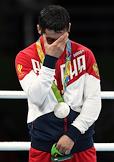 XXXI летние Олимпийские игры в Рио-де-Жанейро. Соревнования по боксу среди мужчин в весовой категории до 52 кг. Призеры соревнований, слева направо: член олимпийской сборной России Миша Алоян (серебряная медаль), член олимпийской сборной Узбекистана Шахобиддин Заиров (золотая медаль), член олимпийской сборной Венесуэла Йоэль Сегундо Финоль (бронзовая медаль) и член олимпийской сборной КНР Ху Цзяньгуань (бронзовая медаль) во время церемонии награждения.