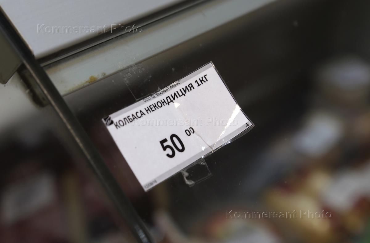 Жанровая фотография. Ценник на некондиционную колбасу в магазине.