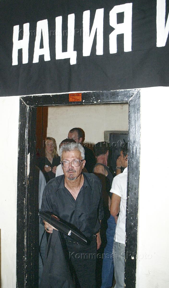 Leader of the Russian National Bolshevik Party (NBP), prose and poetry author Edward Limonov (right) takes part in the poetry party headlined 'Children's Book of the Dead'. The party was held in the NBP headquarters.