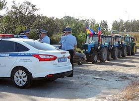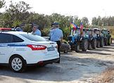 Акция фермеров Краснодарского края приехать к президенту России на тракторах, чтобы рассказать о своих проблемах. Сотрудники полиции Ростовской области перекрыли движение участникам акции в поселке Дорожный.