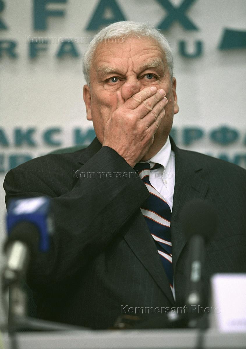 Сопредседатель института Гэллапа Алек Гэллап во время пресс-конференции на тему: "Что стоит за торговой маркой "Гэллап" в России? Настоящий Институт Гэллапа в Москве". Пресс-конференция состоялась в агентстве "Интерфакс".