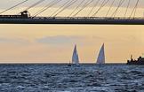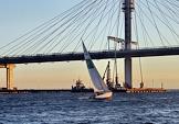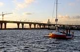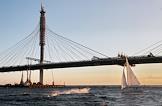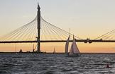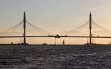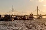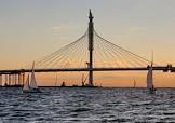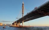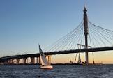 Виды Санкт-Петербурга. Западный скоростной диамет (ЗСД) в процессе строительства. Мост через Петровский канал между островами Васильеский и Крестовский после стыковки центрального пролета.