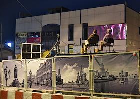 Жанровая фотография. Техника коммунальных служб города во время сноса торгового центра "Электрон", построенного без разрешения на площади у станции метро "Электрозаводская".