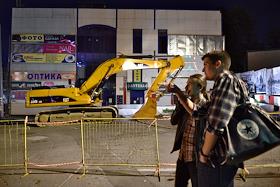Жанровая фотография. Техника коммунальных служб города во время сноса зданий, построенных без разрешения на площади у станции метро "Южная".