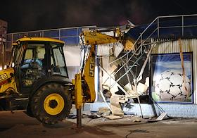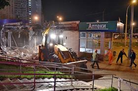Снос зданий, построенных без разрешения. ТЦ "Электрон" у метро Электрозаводская.