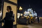 Жанровая фотография. Техника коммунальных служб города во время сноса зданий, построенных без разрешения на площади у станции метро "Кропоткинская".