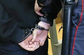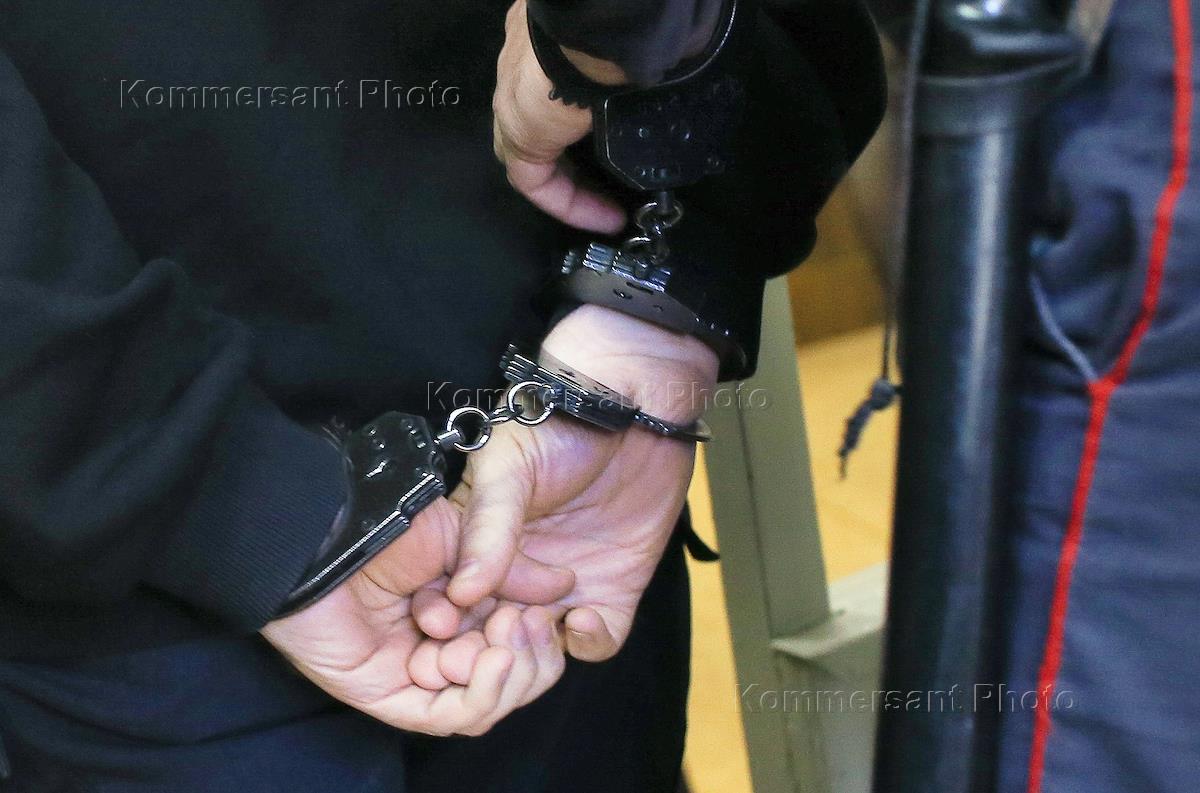 Бывший представитель в Совете Федерации (СФ) России от Белгородской областной думы, генеральный директор компании "Стройинвестинжиниринг СУ-848" Сергей Попельнюхов (cлева), обвиняемый в хищении более 1 миллиарда рублей при строительстве заводов в Венесуэле, на заседании в Лефортовском суде. Наручники