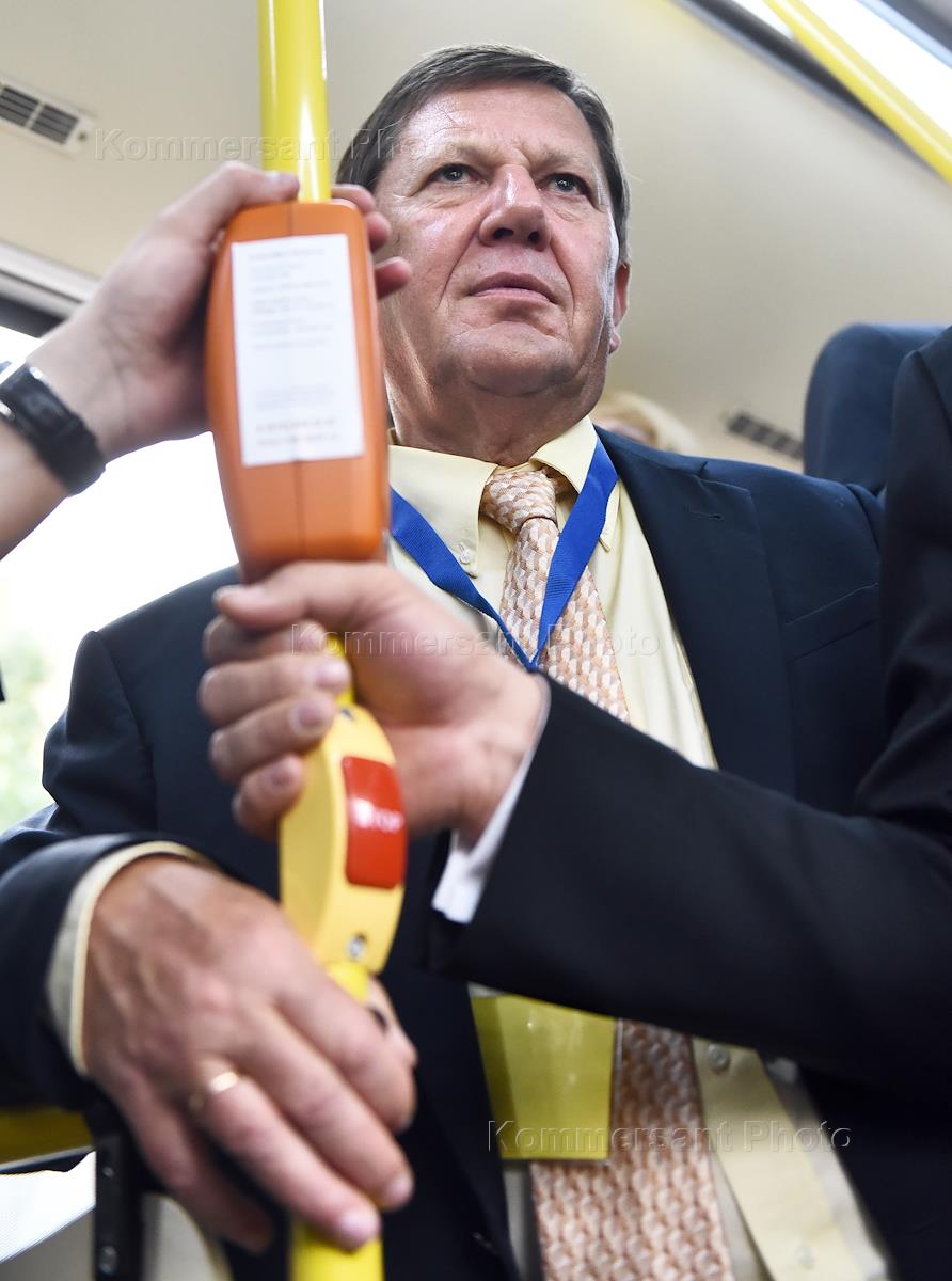 Ректор Санкт-Петербургского университета информационных технологий Владимир Васильев во время демонстрации информационно-платежной системы третьего поколения на общественном транспорте.