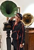 Жанровая фотография. Музей граммофона. Создатель музея Владимир Дерябкин среди коллекции граммофонов.
