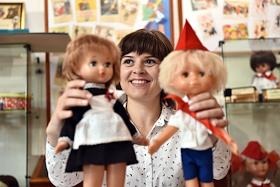 Жанровая фотография. Музей СССР «Мир детства». Мария Кожухова демонстрирует куклы производства СССР.