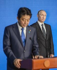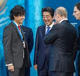 Рабочая поездка президента России Владимира Путина в Дальневосточный федеральный округ. II Восточный экономический форум. Премьер-министр Японии Синдзо Абэ перед началом пленарного заседания "Открывая Дальний Восток".