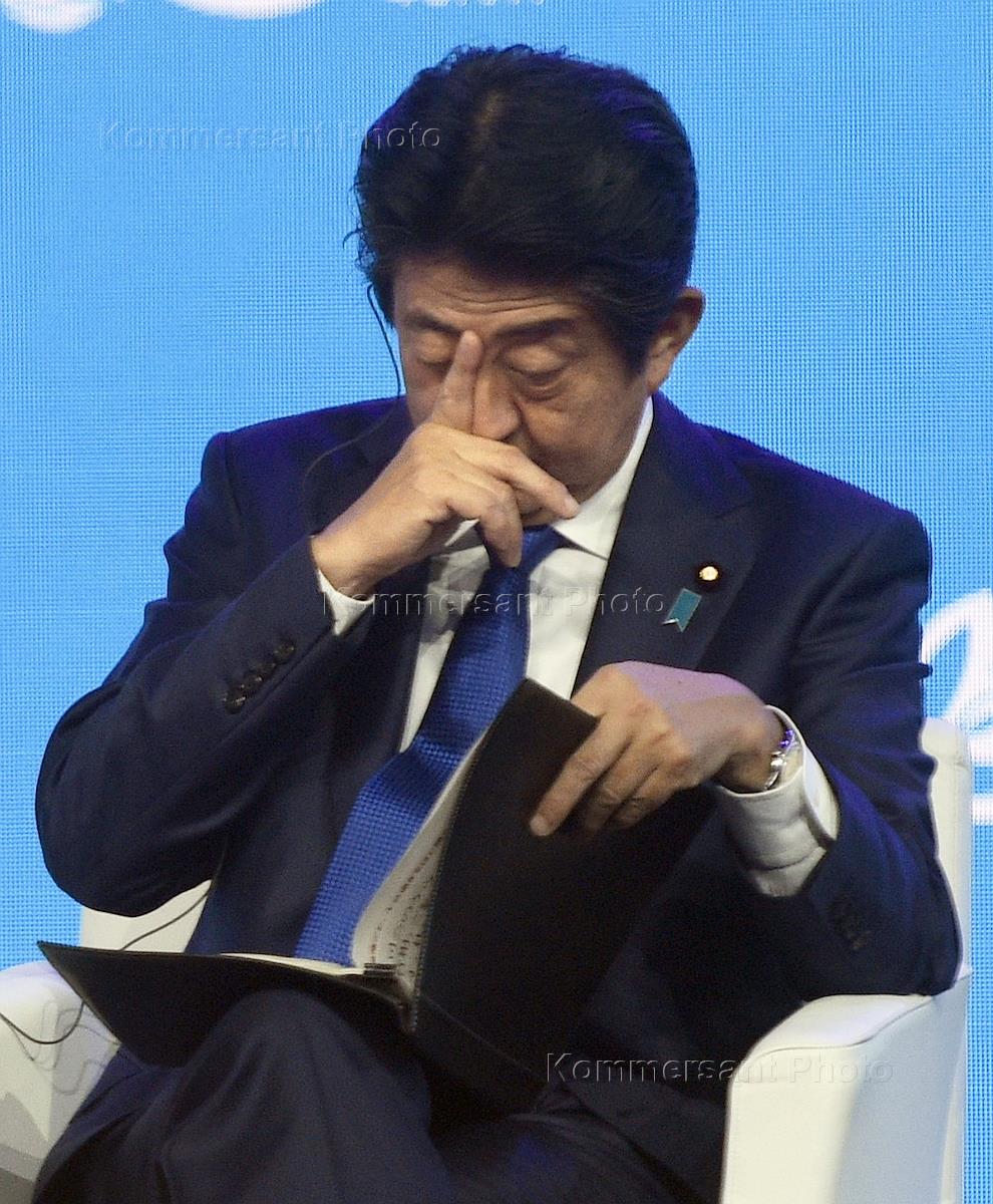 Рабочая поездка президента России Владимира Путина в Дальневосточный федеральный округ. II Восточный экономический форум. Премьер-министр Японии Синдзо Абэ на пленарном заседании "Открывая Дальний Восток".