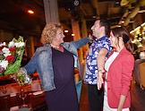 Вечеринка по случаю предстоящего дня рождения главы ИД "Axel Springer Russia" Регины фон Флемминг прошла в Duran Bar. Слева направо: глава ИД "Axel Springer Russia" Регина фон Флеминг и адвокат Александр Добровинский с супругой Мариной во время вечеринки.