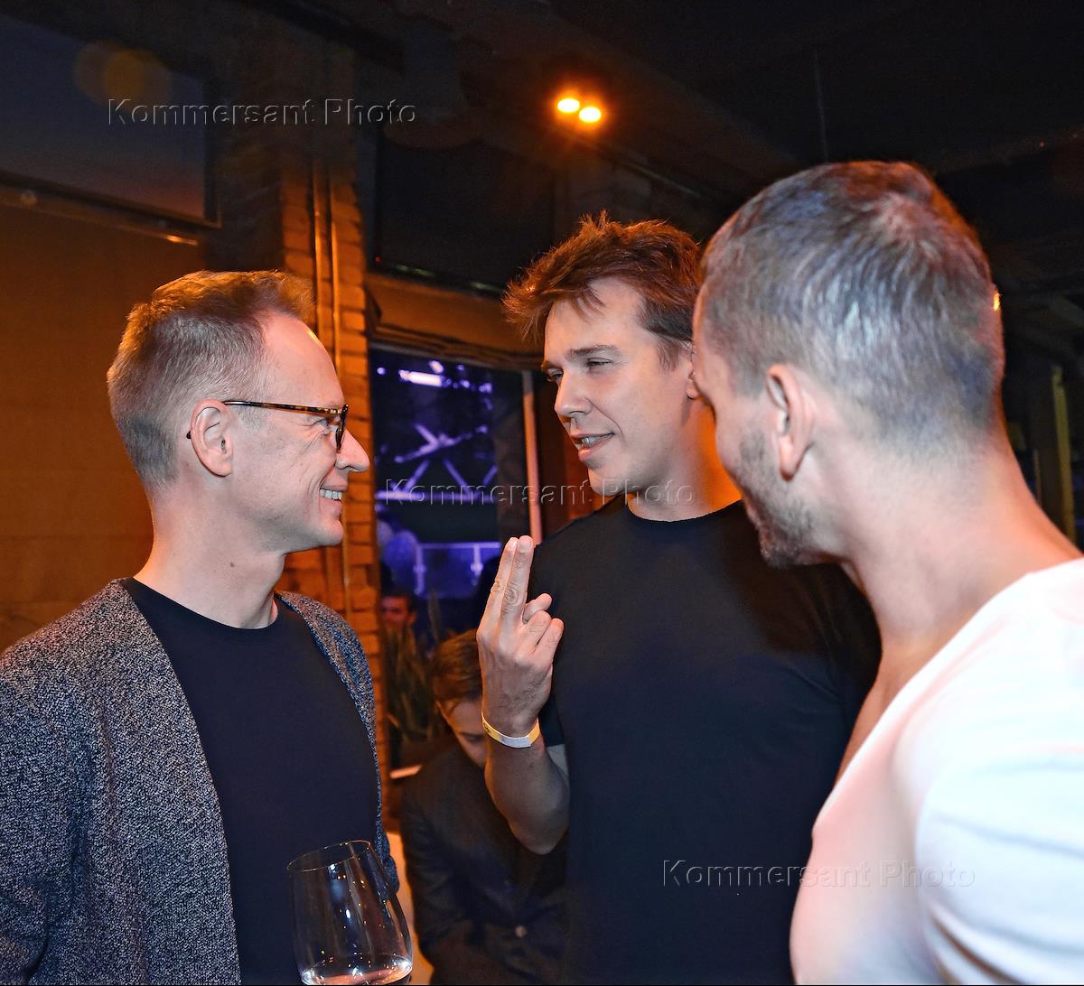 Вечеринка по случаю предстоящего дня рождения главы ИД "Axel Springer Russia" Регины фон Флемминг прошла в Duran Bar. Генеральный директор ООО "Большой город" Максим Кашулинский (слева) и журналист Михаил Зыгарь (в центре) во время вечеринки.