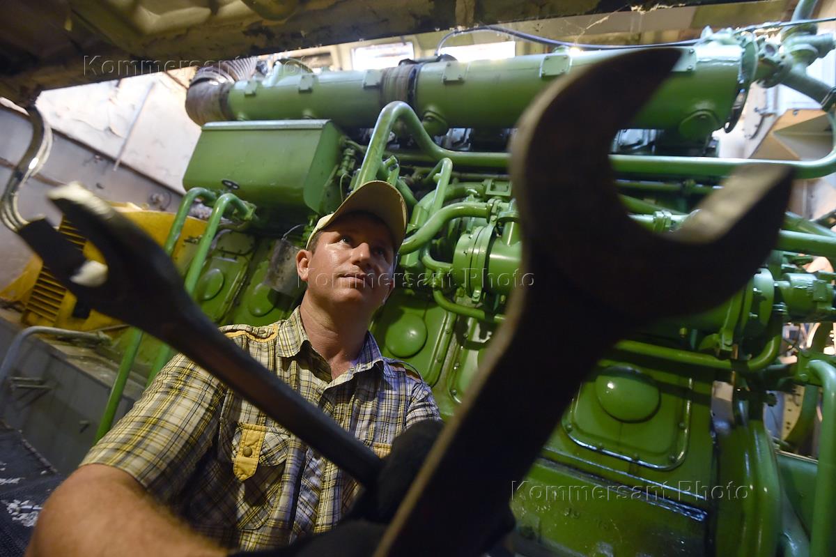 Жанровая фотография. Репортаж о речном транспорте на реке Волге. Работа экипажа теплохода "Окский-15". Машинное отделение.