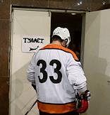The hockey player Yaromir Yagr prepares for the match between team of the Central Administrative District and Czechia team "Yagr Team".