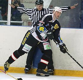 One of the hockey player of the Central Administrative District prepares for the match with Czechia team "Yagr Team".