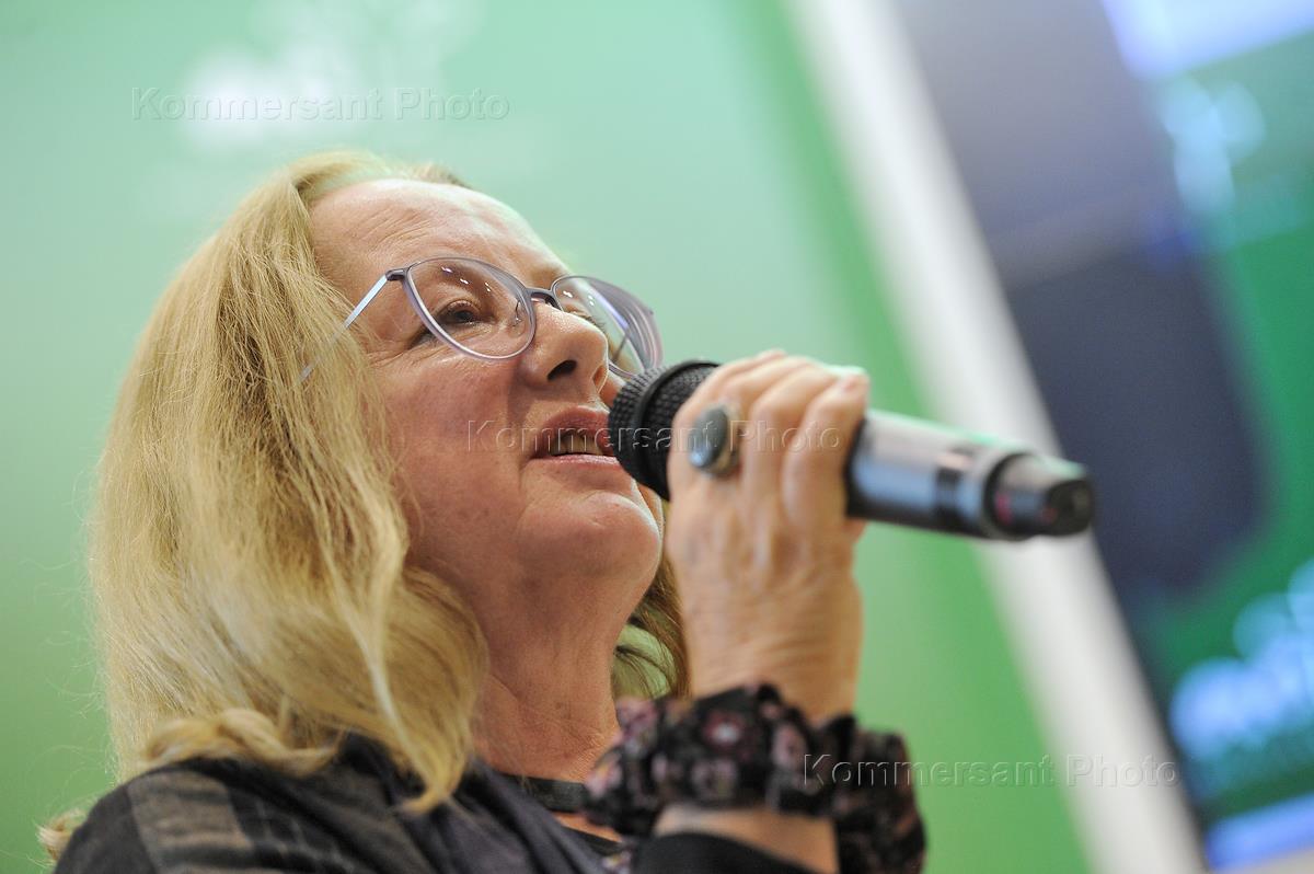 29-я Московская международная книжная выставка-ярмарка ММКВЯ) на ВДНХ. Издатель Елена Шубина во время презентации сборника прозы "Москва: место встречи" издательства Елены Шубиной.