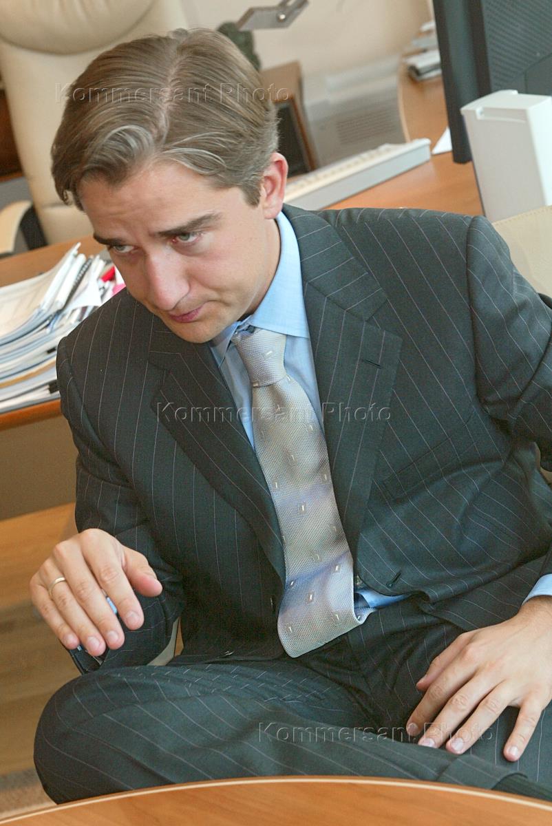 Acting CEO of MTS mobile operator Vasily Sidorov is interviewed in his office.
