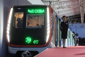 Презентация поезда метро нового поколения "Москва" со сквозным проходом. Презентация прошла у главного входа на территорию ВДНХ.