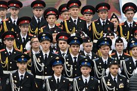 День города в Москве. Праздничные мероприятия. Торжественная церемония открытия Дня города прошла на Красной площади. Президент России Владимир Путин (в центре) во время церемонии открытия.
