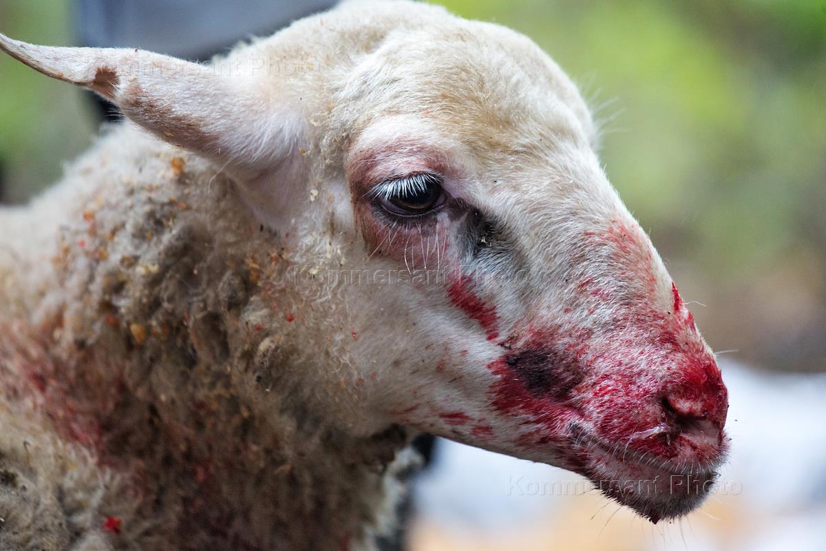 Жертвенный баран в день праздника жертвоприношения Курбан-байрам в Уфе.