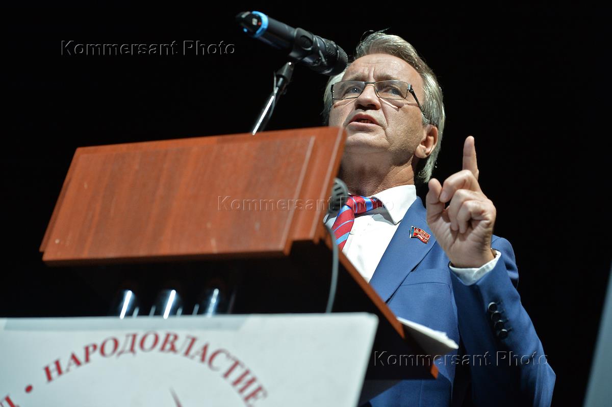 Внеочередной съезд народных депутатов города Москвы, организованный Коммунистической партии России (КПРФ), прошел в преддверии выборов депутатов Государственной Думы седьмого созыва в здании Театра "Содружество актеров Таганки". Председатель ЦК КПРФ Геннадий Зюганов во время съезда.