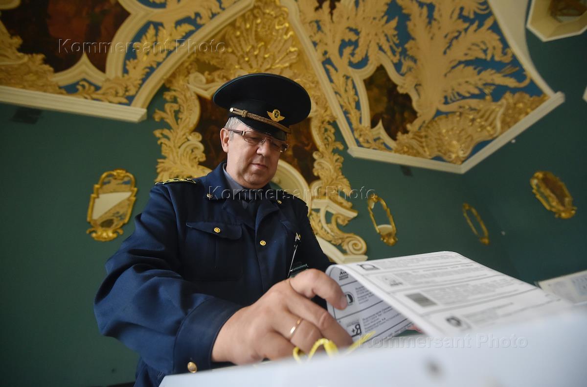 Выборы депутатов Государственной думы VII созыва. Голосование. Избиратель на избирательном участке на Казанском вокзале.