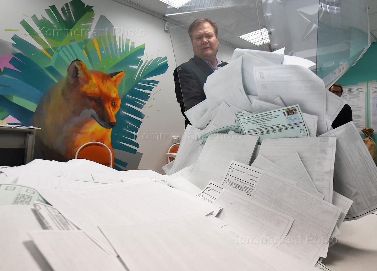 Единый день голосования по выбору депутатов Государственной думы России и в местные органы власти. Подсчет результатов голосования на избирательном участке № 39 на улице Бахрушина.