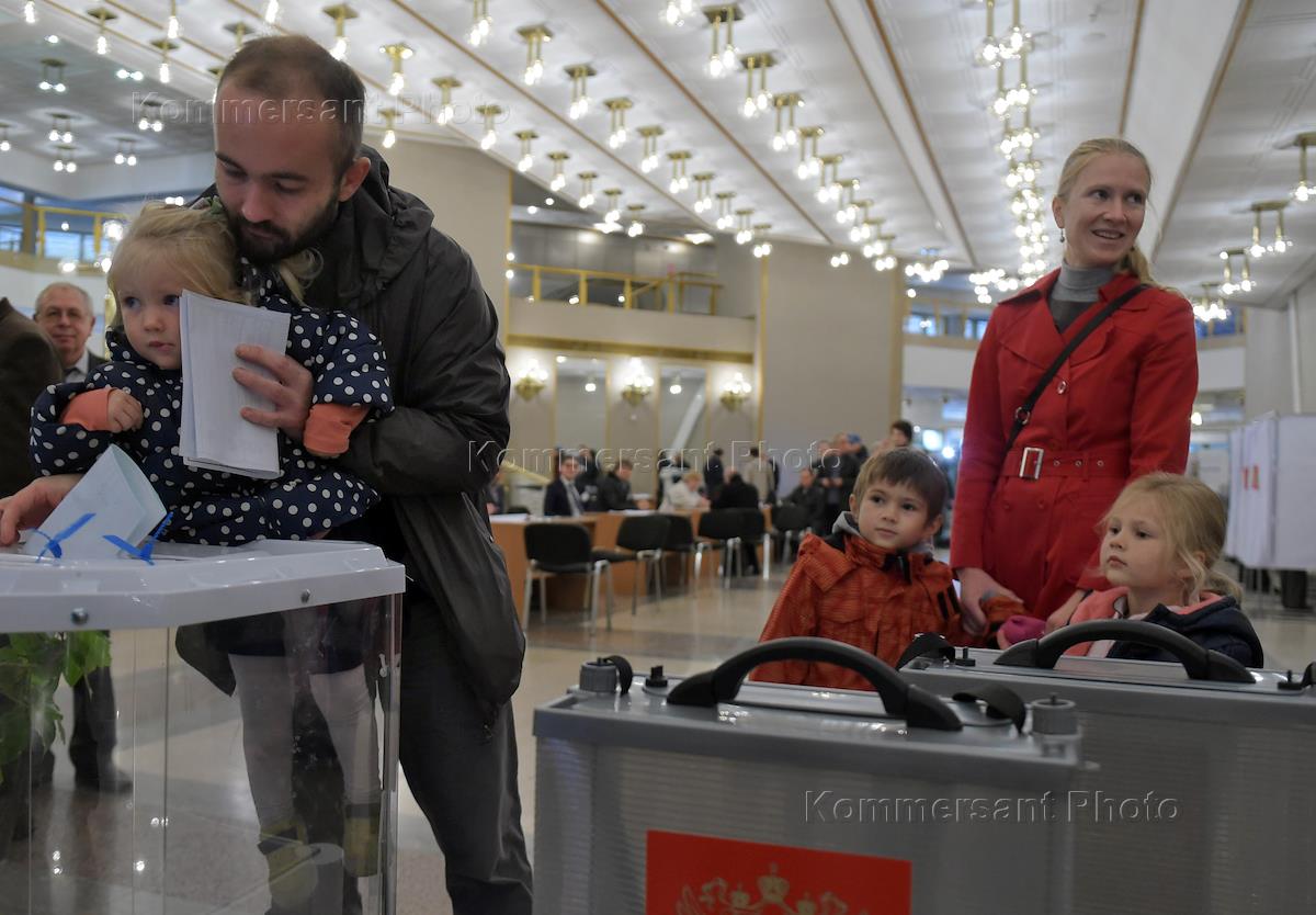 Выборы депутатов Государственной думы VII созыва. Голосование. Избиратель на избирательном участке.