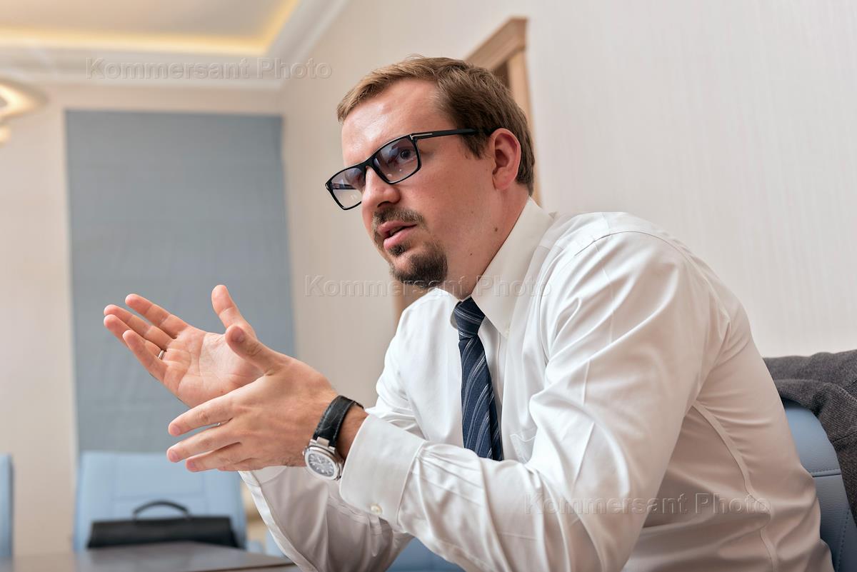 Член правления банка "ВТБ" Владимир Верхошинский во время интервью.