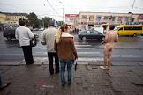 Виды Калининграда. Голый мужчина во время перехода улицы по пешеходному переходу.