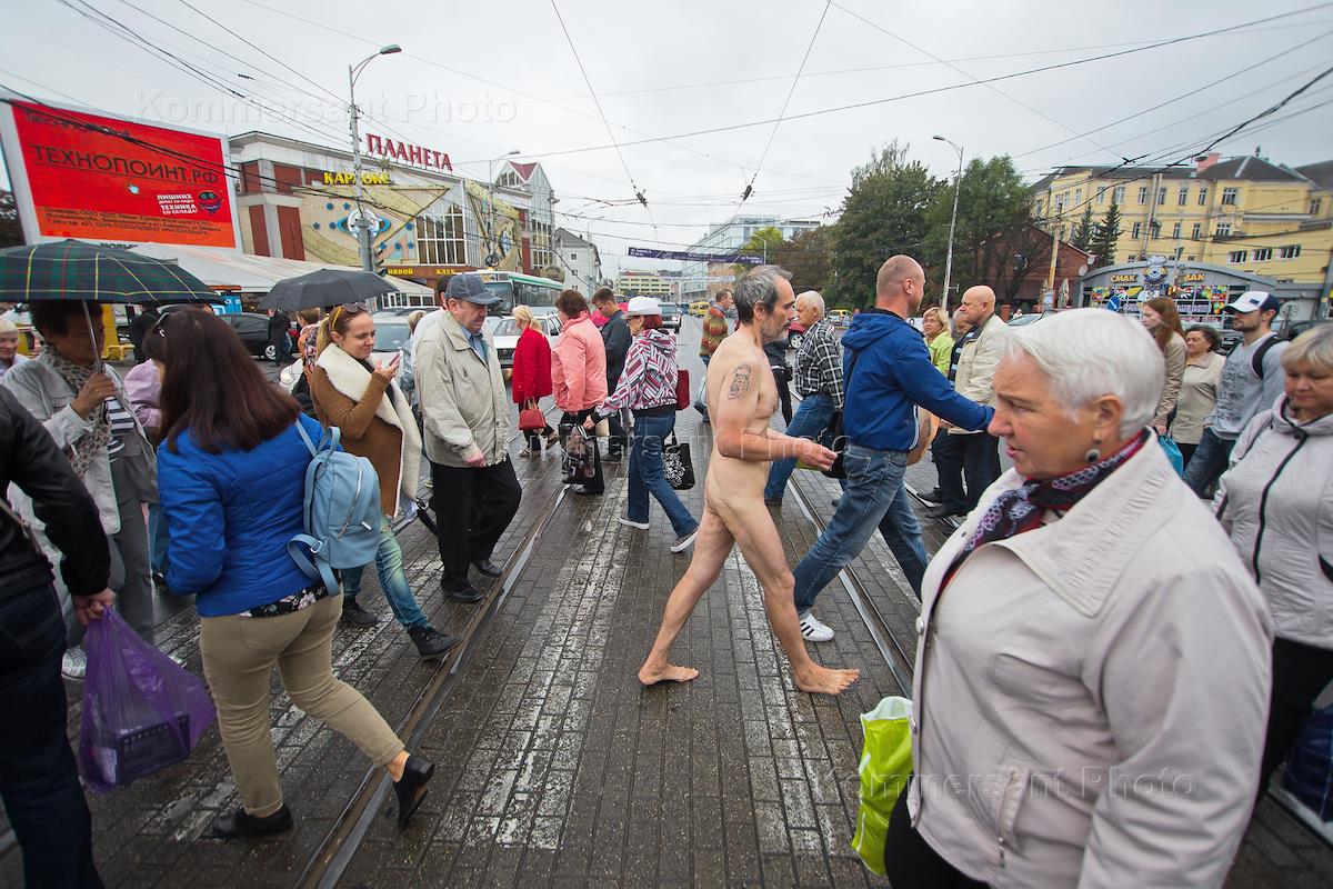 Виды Калининграда.Голый мужчина на улицах Калининграда.