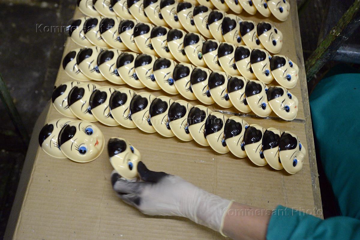 Тамбовский пороховой завод. Цех по производству кукол-неваляшек. Штамповка лиц кукол.
