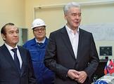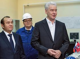 Мэр Москвы Сергей Собянин (справа) и заместитель мэра Москвы в правительстве Москвы по вопросам жилищно-коммунального хозяйства и благоустройства Петр Бирюков (в центре) во время посещения тепловой электростанции "Крылатское".