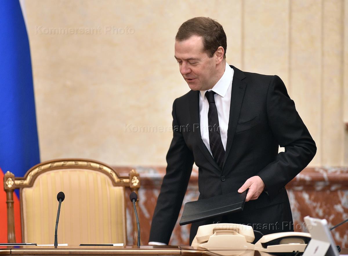 Заседание правительства России. Председатель правительства России Дмитрий Медведев во время заседания.
