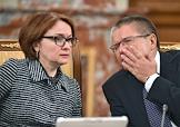 Заседание правительства России. Председатель Центрального Банка России Эльвира Набиуллина (слева) и министр экономического развития России Алексей Улюкаев (справа) перед началом заседания.