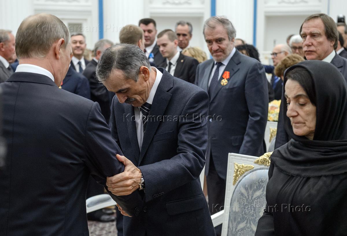 Mariinski Theatre Artistic Director and Main Conductor Valery Gergiev (right) attends a ceremony of giving state decorations in the Kremlin.