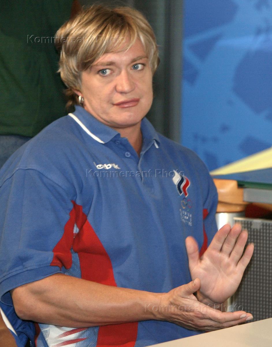 Чемпионка Мира по легкой атлетике 2001 года Елена Прохорова на пресс-конференции, посвященной предстоящему чемпионату мира по легкой атлетике, который пройдет с 23 августа по 1 сентября во Франции. Пресс-конференция состоялась в РИА "Новости".