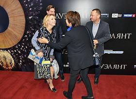 Ресторатор Аркадий Новиков (cлева) со супругой, владелицей салона цветов "55" Надеждой Адвокатовой (справа) на премьере фильма "Дуэлянт" режиссера Алексея Мизгирева, в кинотеатре "Формула Кино на Кутузовском".