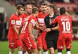 Футбол. Чемпионат России по футболу среди клубов Премьер-лиги. 8-ой тур. Матч между командами "Спартак" (Москва) и "УФА" (Уфа), на стадионе Открытие Арена. Главный арбитр матча Роман Голимов (справа).