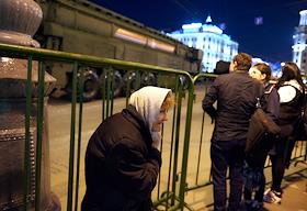 Репетиция Парада Победы на Тверской улице. Сотрудники полиции в подземном переходе.