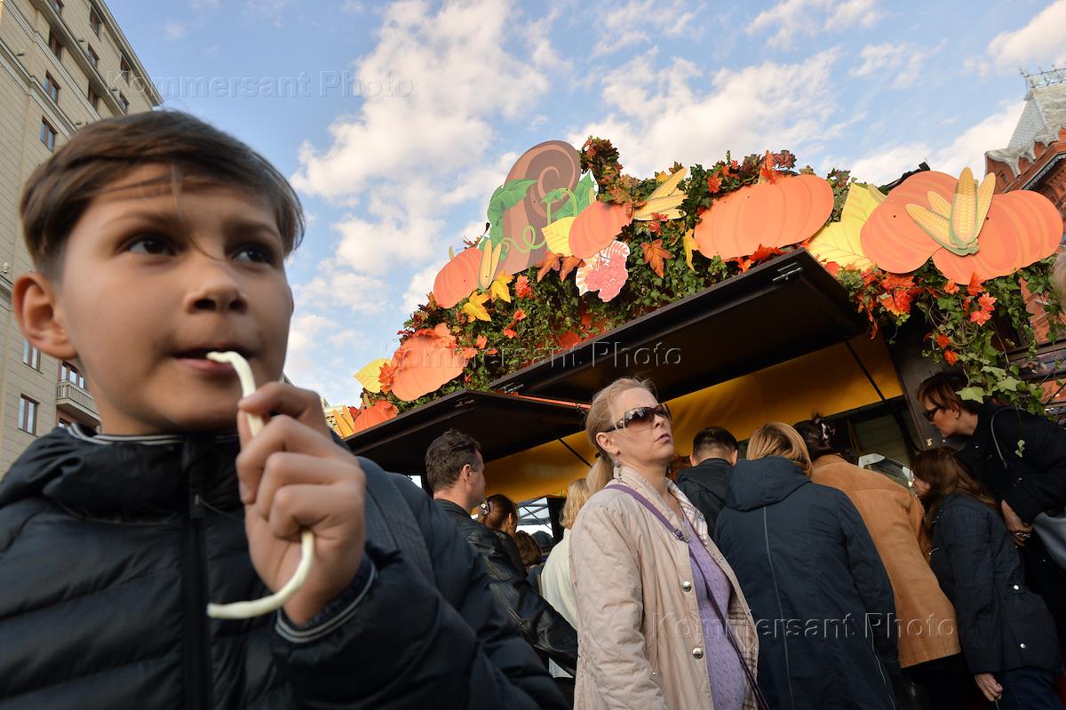 Гастрономический фестиваль "Золотая осень" в Москве. Ярмарка "Сырные дни" прошла на площадках "Городской рынок" - площадь Революции, "Осенний пикник" - переход от площади Революции к Манежной площади и "Птичья гавань" - Манежная площадь.
