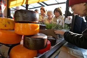 Гастрономический фестиваль "Золотая осень" в Москве. Ярмарка "Сырные дни" прошла на площадках "Городской рынок" - площадь Революции, "Осенний пикник" - переход от площади Революции к Манежной площади и "Птичья гавань" - Манежная площадь. Знак сыровара Джона Кописки.