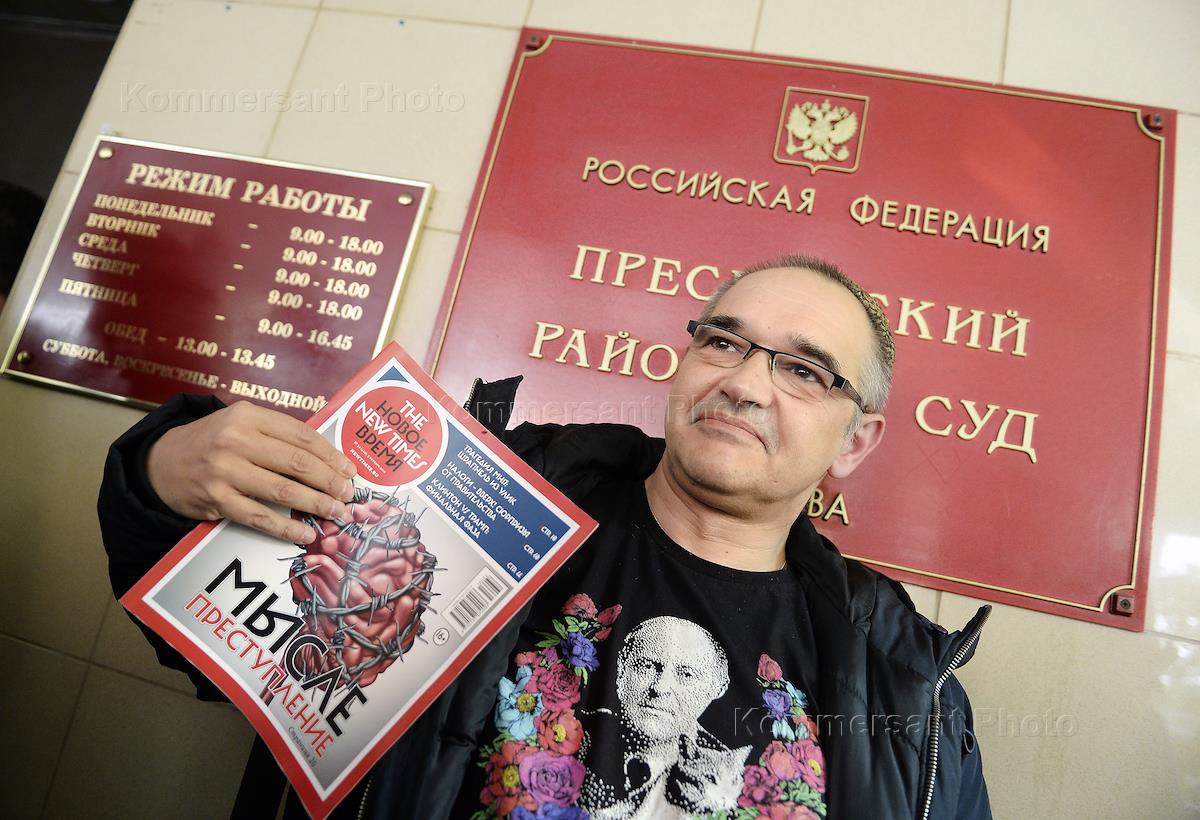 Блогер Антон Носик, обвиняемый в распространении экстремистских материалов в интернете, перед началом заседания в Пресненском суде.